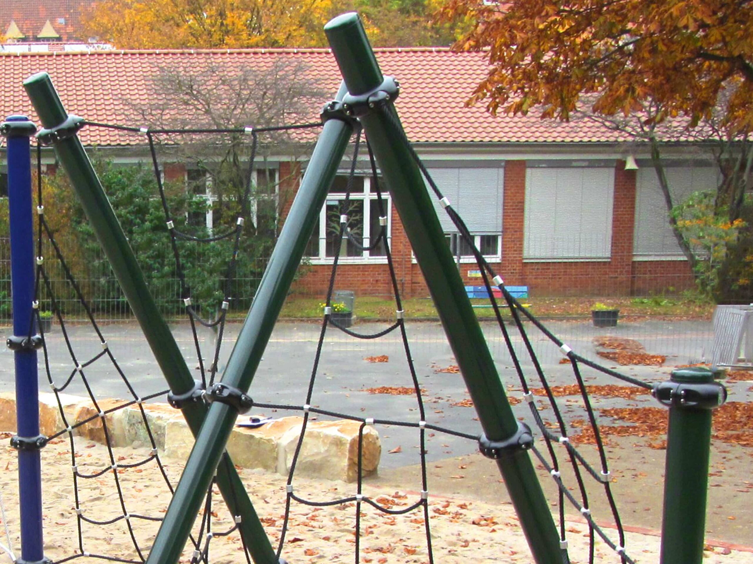 The tilted nets are designed for climbing through, whereby the climbers have to occasionally change their position to balance their weight.