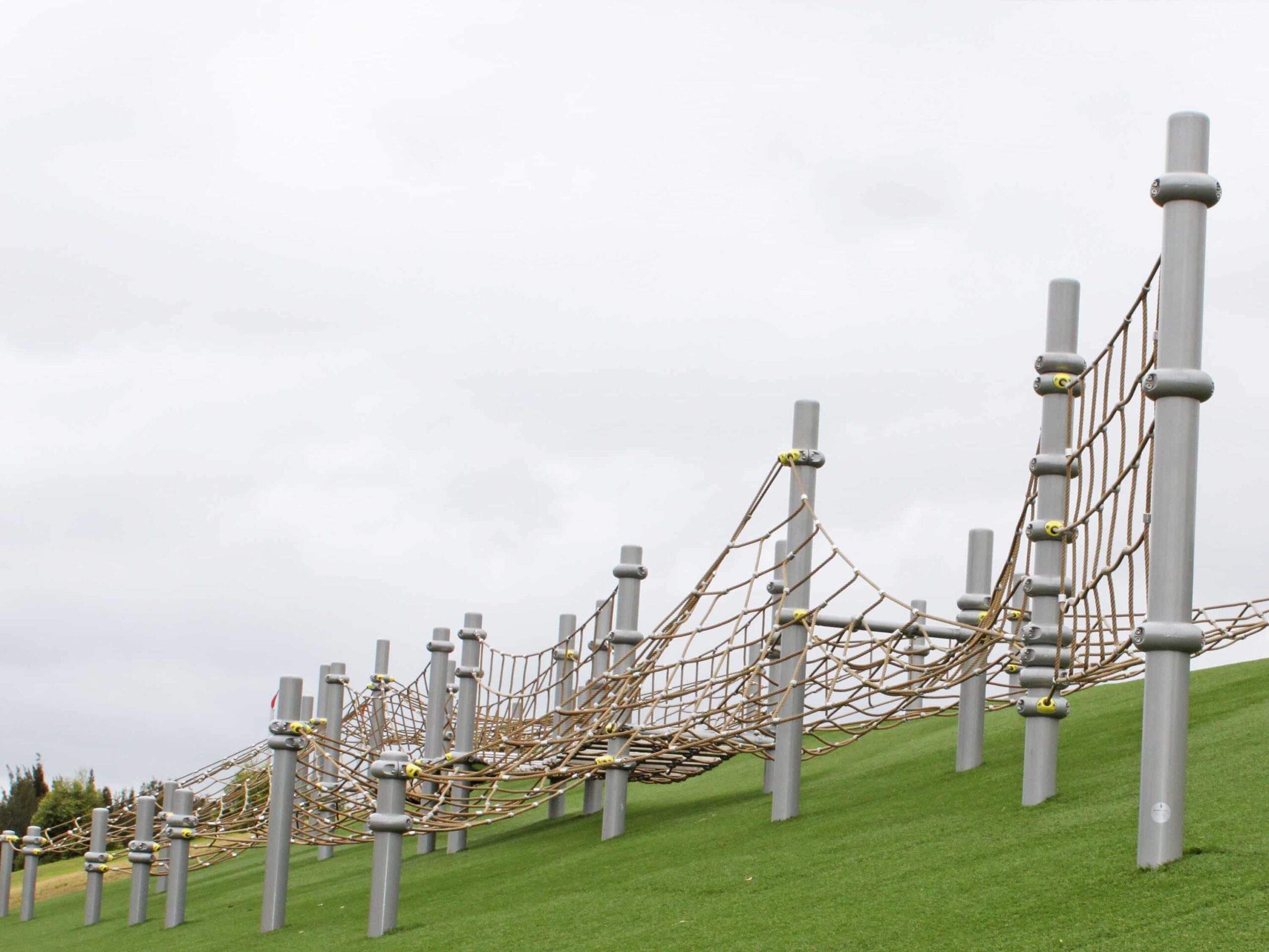The stunning diversity of play components aside, this structure amazes with its adaptation to the complex landscaping underneath for a peaceful symbiosis with the surrounding. Nature play at its best.