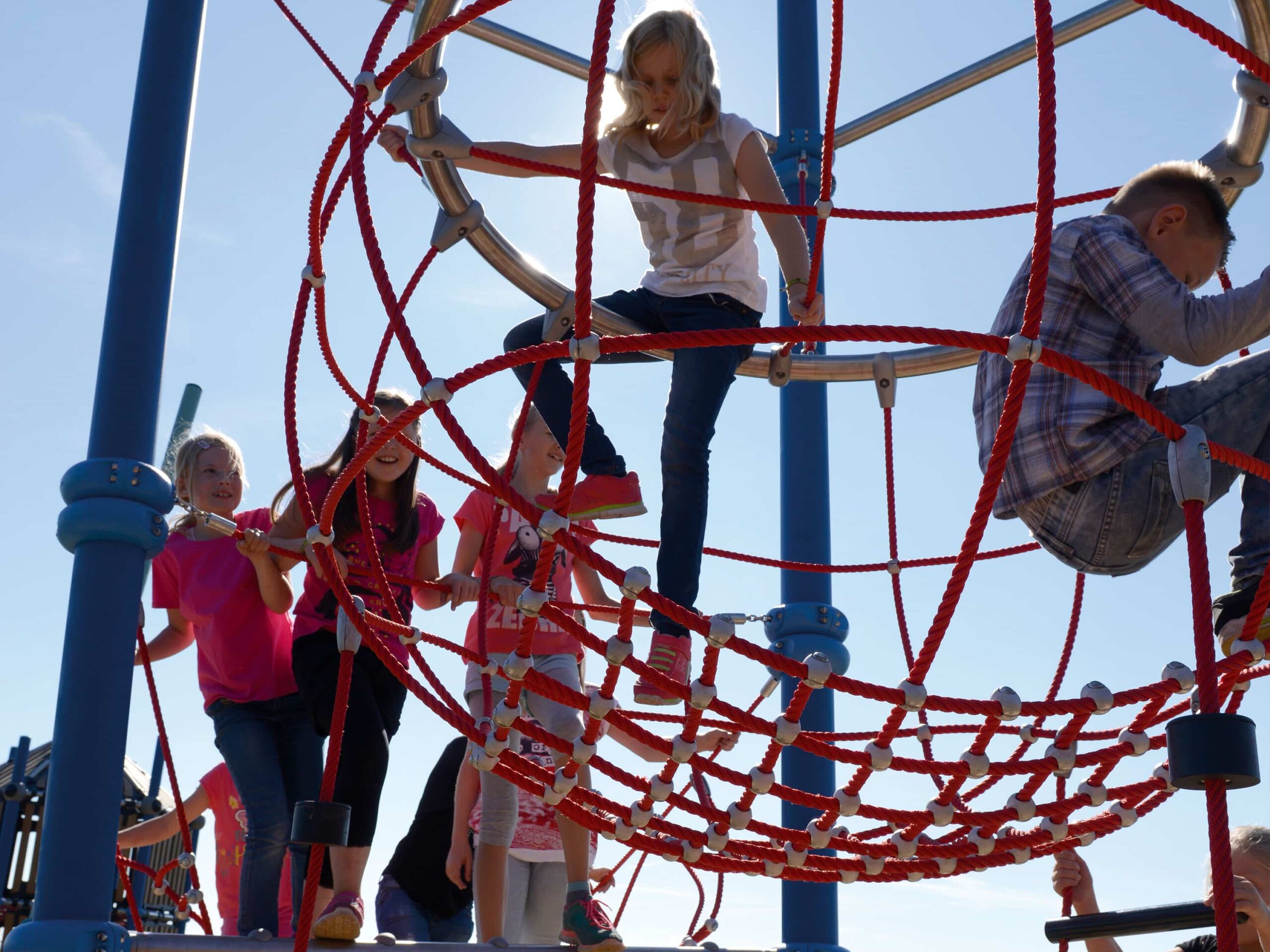 Inside that big netball, formed by a special spring-core cable, kids are rised above all the action. It is great place to observe the playscape or to having a chat or just to let the mind wander. Available with or without balls on the post.